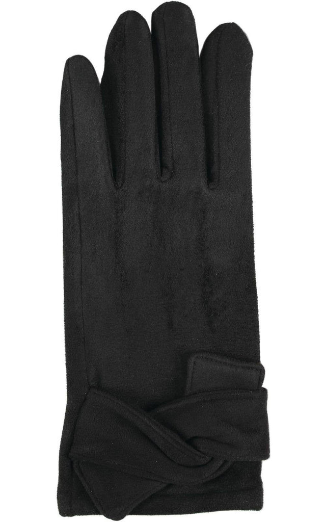 Texting Faux Suede Gloves with Flat Knot Trim in Black