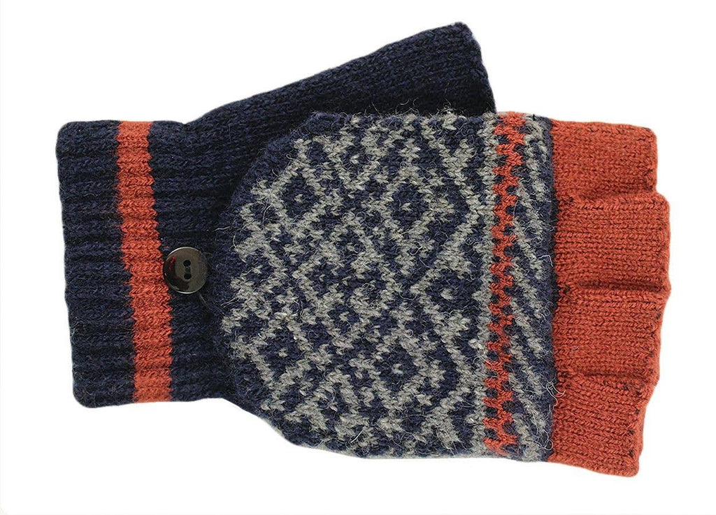 Fingerless Cap Knit Gloves in Navy