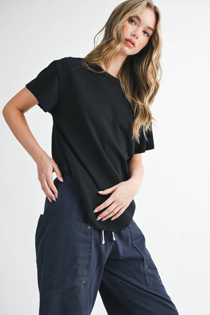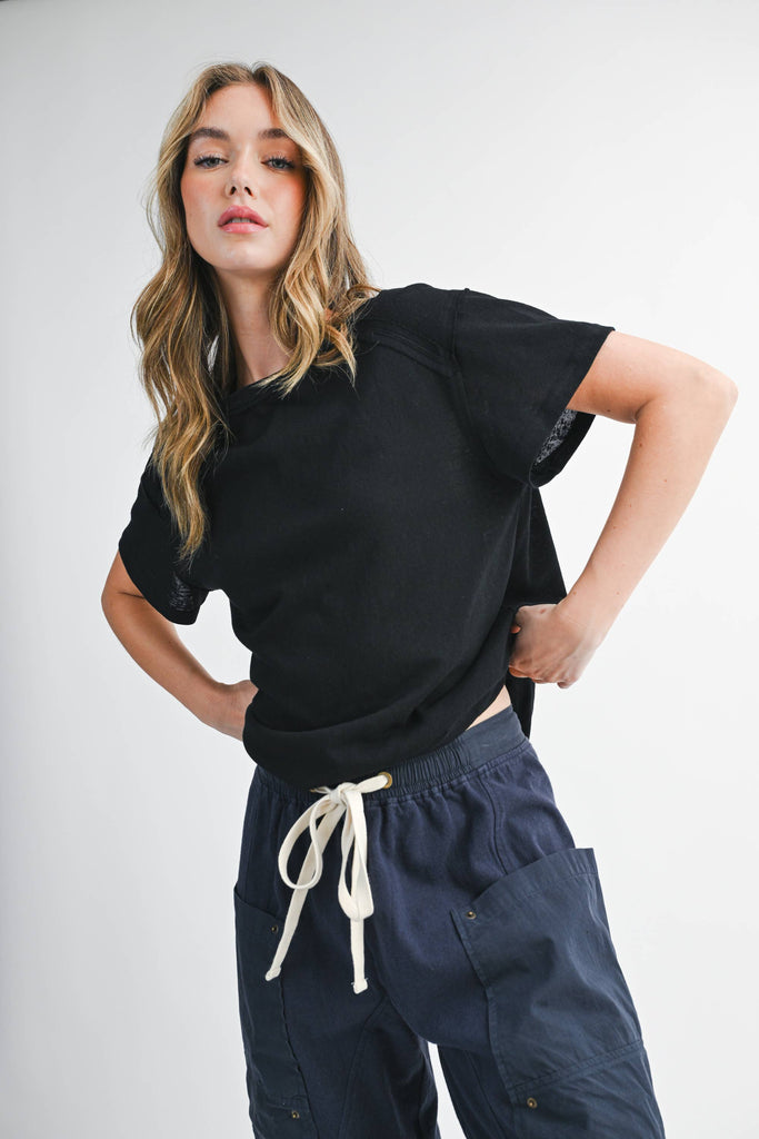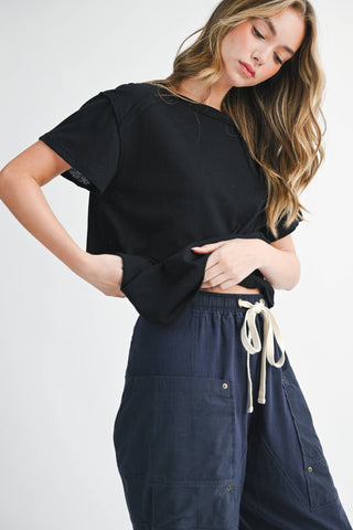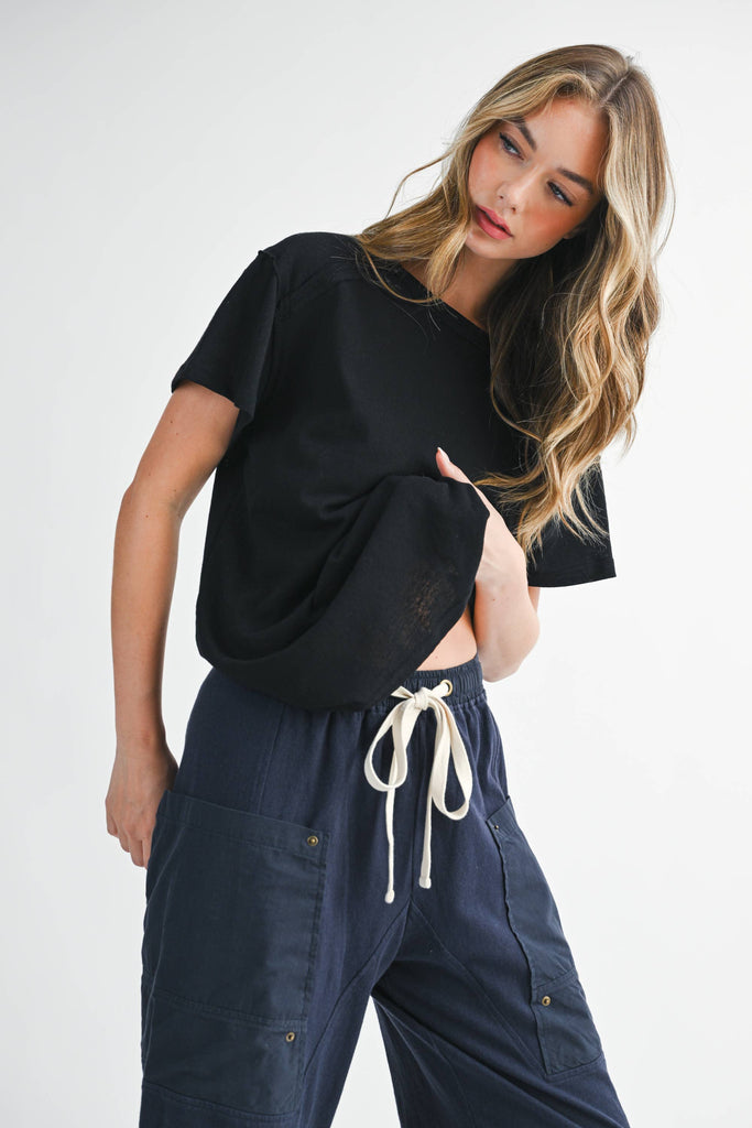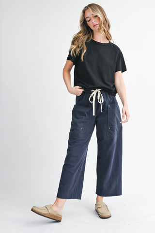 She’s effortlessly laid-back with just the right edge. These wide leg pants feature a soft cotton twill body, contrast utility pockets, and a chunky drawstring waist for that lived-in, borrowed-from-him feel. Perfect for pairing with your go-to basics or an oversized button-down.