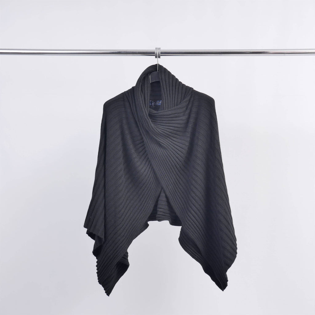 A cozy essential that makes all the difference. This knit poncho stands out with its asymmetrical cut and elegant cross drape at the front. Its textured ribbed knit adds depth while remaining fluid and light on the shoulders. Perfect for warming up a silhouette with style, it offers total freedom of movement and an effortlessly modern look. Wear it over a white shirt and high-waisted jeans for a casual-chic look or as a light layer over a plain dress for cool evenings. Composition: 49% viscose, 28% polyester, 23% polyamide Made in China Care instructions: Hand wash in cold water recommended. Dry flat. Iron gently on the reverse if necessary. Do not bleach or tumble dry.