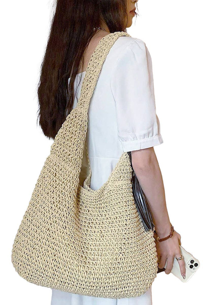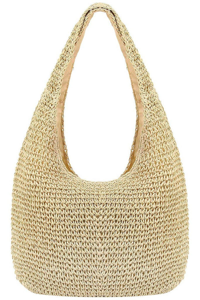 Crochet Woven Rattan Straw Wicker Slouchy Hobo Bag -Dimensions: 22.75" * 16.5" * 5" -Double Top Handles: 10.25" Drop -1 x Zipper Closure Main Compartment -1 x Inner Auxiliary Pocket -Wipe Clean With Cloth -Content: 100% Wicker -Lining: 100% Cotton