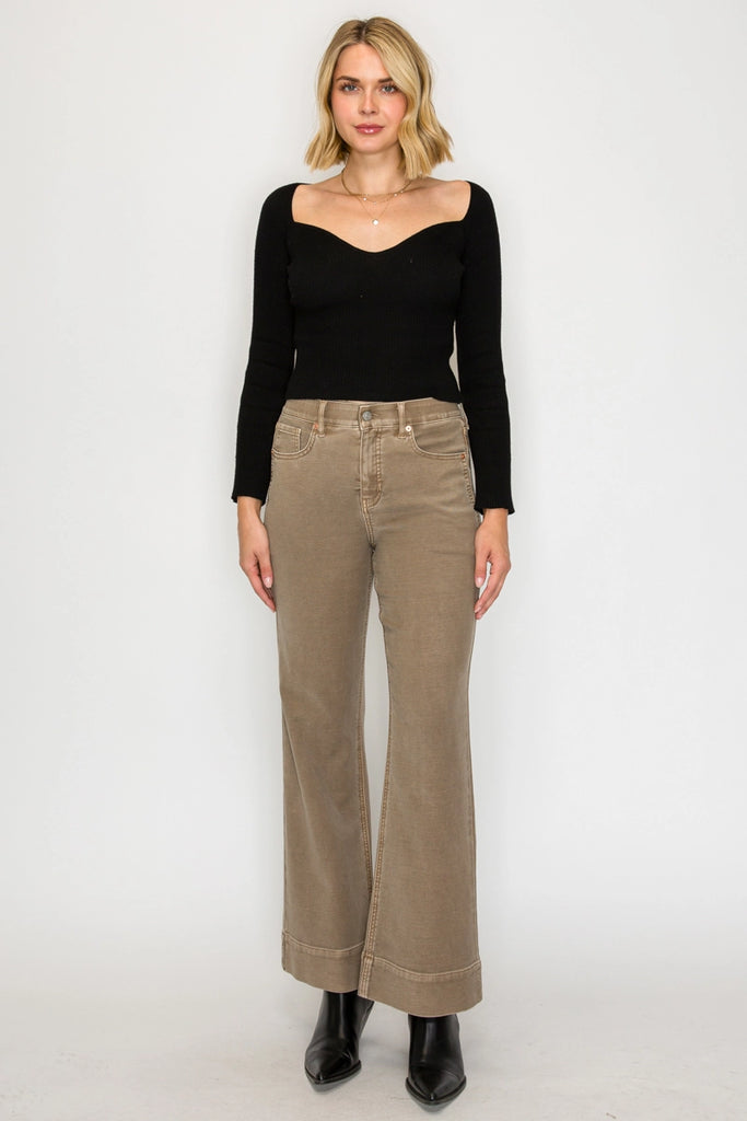 Crafted from a premium stretch fabric, these pants move with you for all-day comfort. The garment-dyed finish gives them a rich, lived-in color and soft feel that only gets better with time. - High-rise waist for a flattering fit - Garment-dyed for unique, saturated color and softness - Stretch fabric for comfort and mobility -Tummy Control Stretch Pocket Bag FRONT RISE : 11 " INSEAM : 31 1/2 "