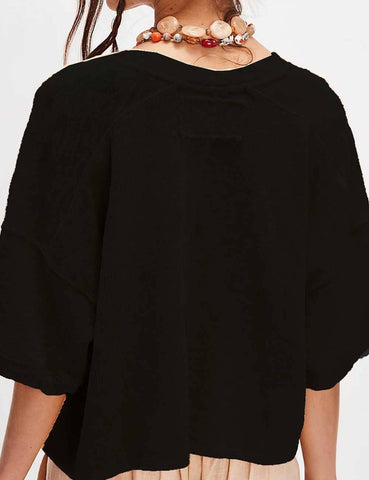 Features: Fabric with stretch, solid color, round neck, midi sleeves, front button closure, casual fit