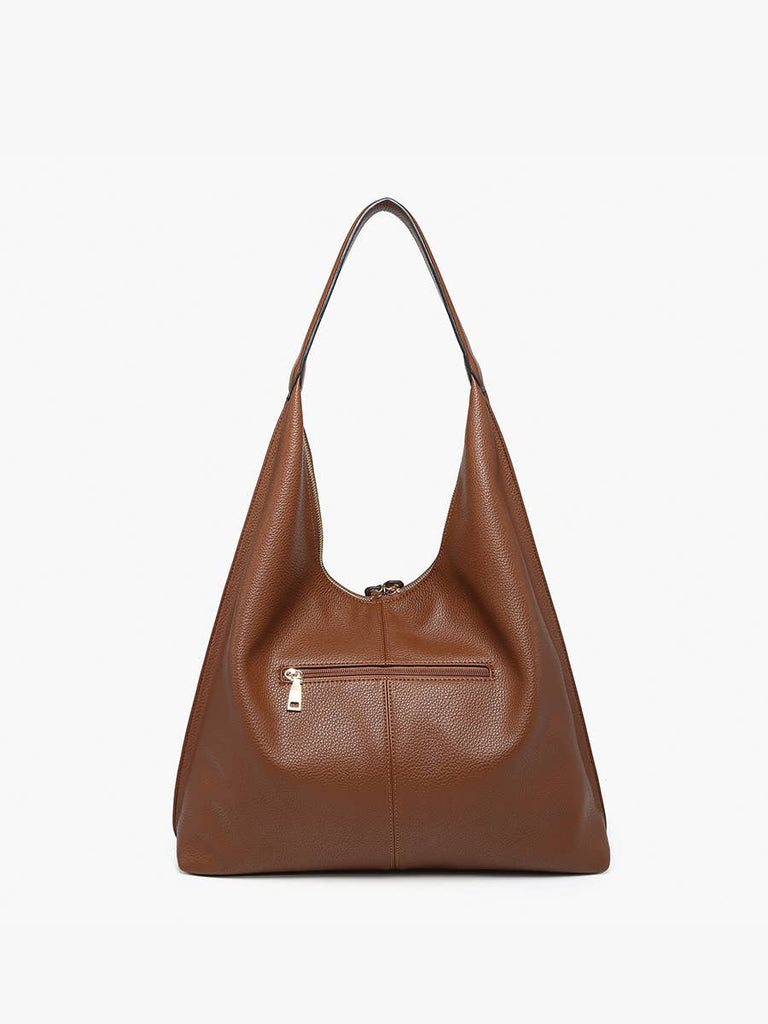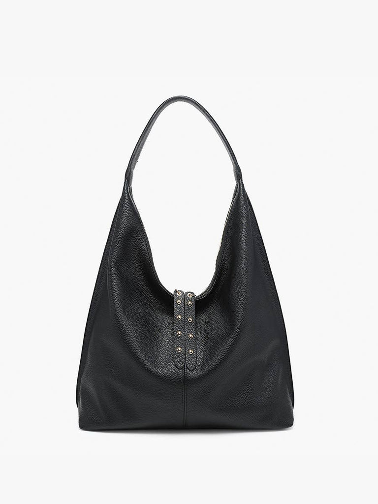 Item Details: -Material: Soft and slouchy fabric -Closure: Double studded zipper pulls -Compartments: Back zip pocket Dimensions: -Length: 18.5 inches -Height: 18.25 inches -Depth: 4 inches Features: -Slouchy Design: The soft fabric and relaxed silhouette give this hobo a stylishly laid-back look. -Double Studded Zipper Pulls: Adds a touch of edge and enhances the bag’s functionality. -Practical Storage: The back zip pocket provides quick access to your essentials. Experience the perfect blend of style and convenience this fall with this slouchy hobo—an effortlessly chic accessory that complements your seasonal wardrobe!